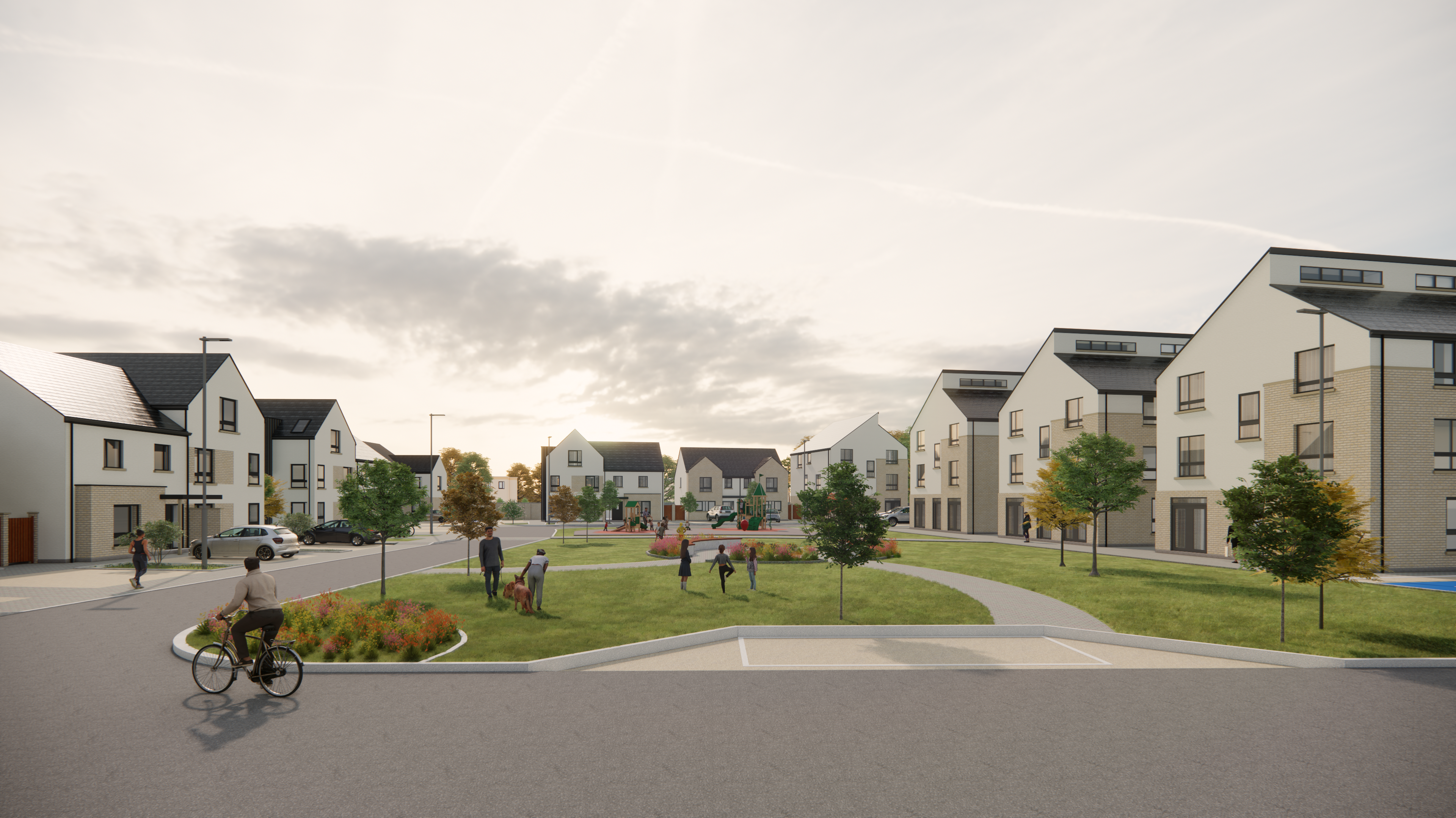A mix of detatched, semi-detatched, terraced and apartment units organised around a shared open space in a quiet residential area of Corbally and close to majestic sweep of the River Shannon.